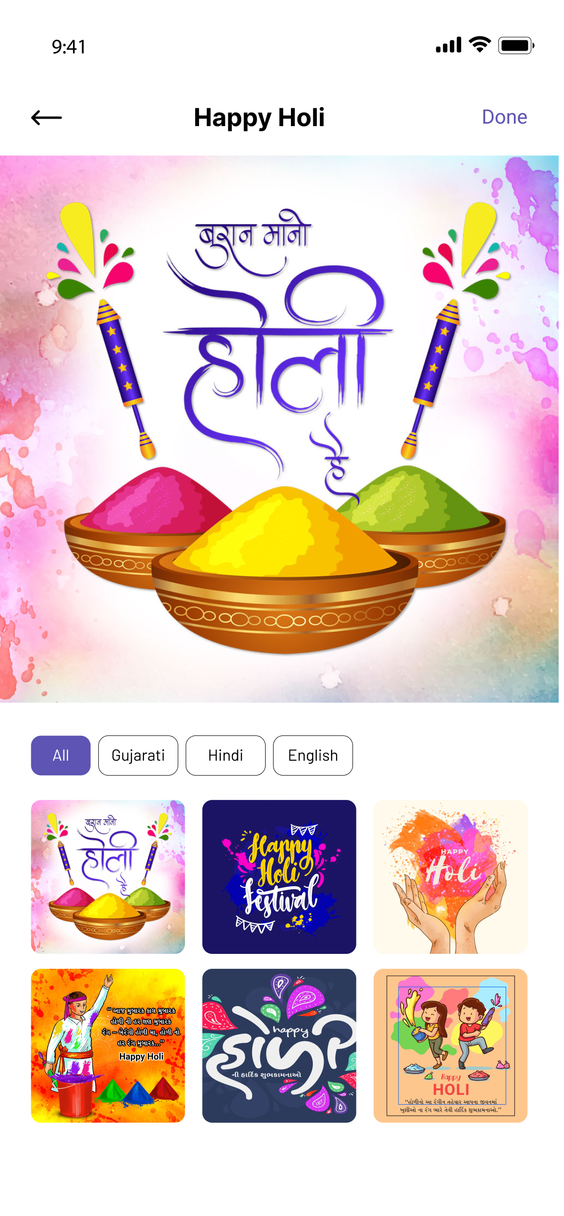 Festival Poster & Videos are avilable in Hindi, English, Gujarati, Marathi, Tamil etc languages. Includes Poster Text in Indian regional languages for the users.