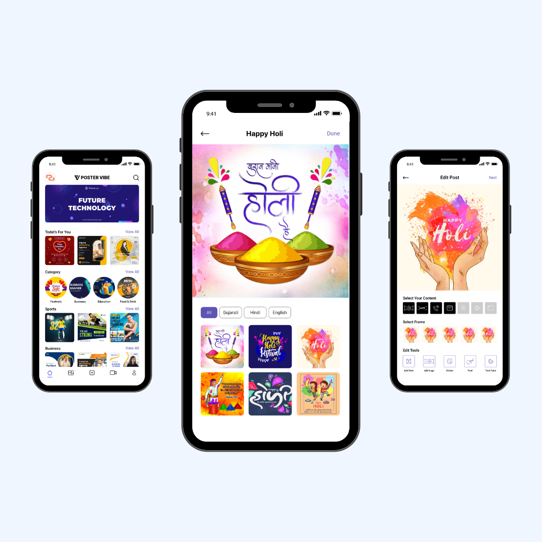 PosterVibe isn't just your typical poster maker app; it's a comprehensive tool designed to cater to individuals, entrepreneurs, and companies alike. Seamlessly craft Daily Posts, Ads Banners, Festival Posters, Digital Marketing Content, Branding Material, and more, all with ease and efficiency.